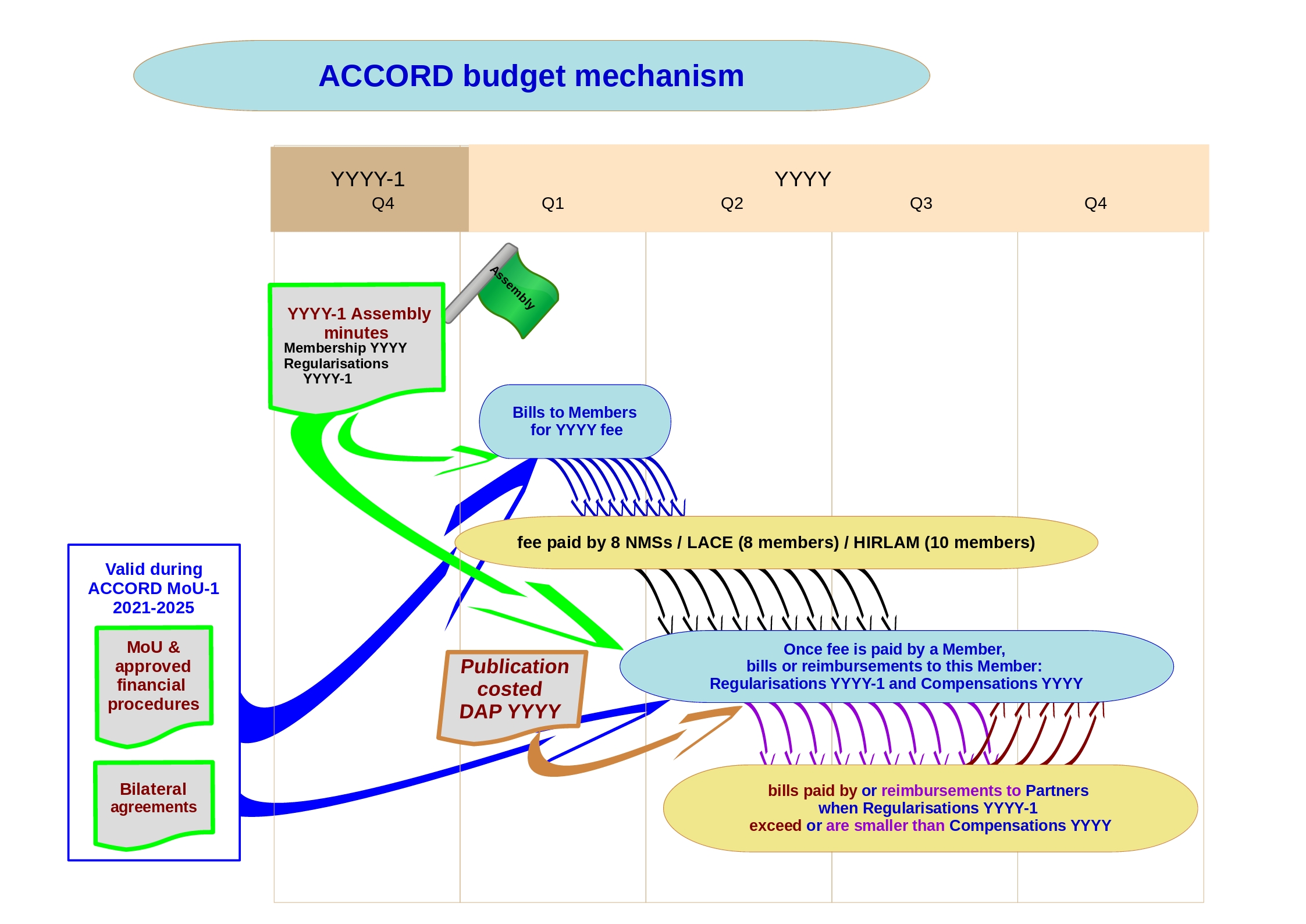 The financial procedures were approved by the ACCORD kick-off Assembly on the 27th of November 2022: Météo-France manages the ACCORD budget via a dedicated specific account (ACCORD 3rd party account) according to the following procedure: