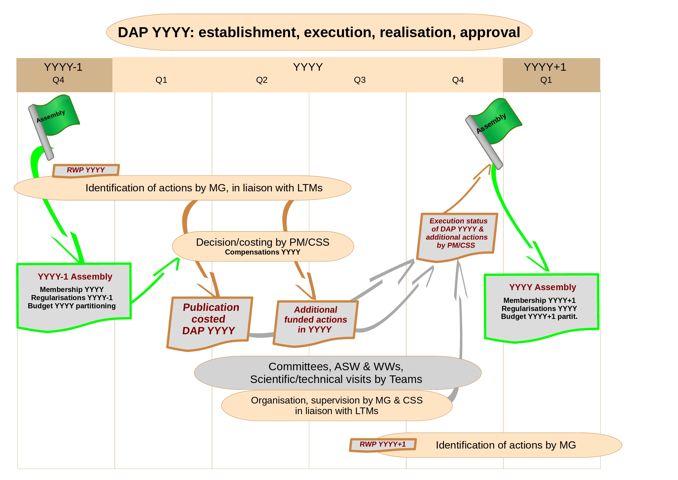 In order of maximise the rate of realisation of the DAP as requested by the 3rd Assembly , the MG and the CSS added a more flexible mechanism: with respect to the published DAP-YYYY some additional actions are discussed and approved by the MG to be ACCORD-funded in YYYY (although the reimbursement to the Members will be done with reimbursements of the DAP-YYYY+1 actions).
