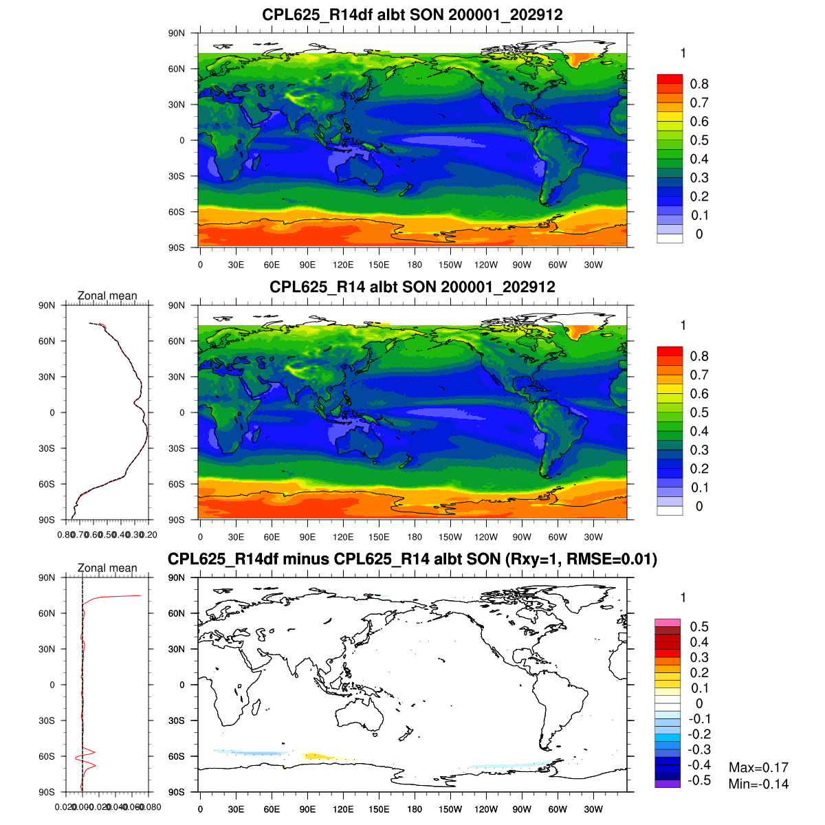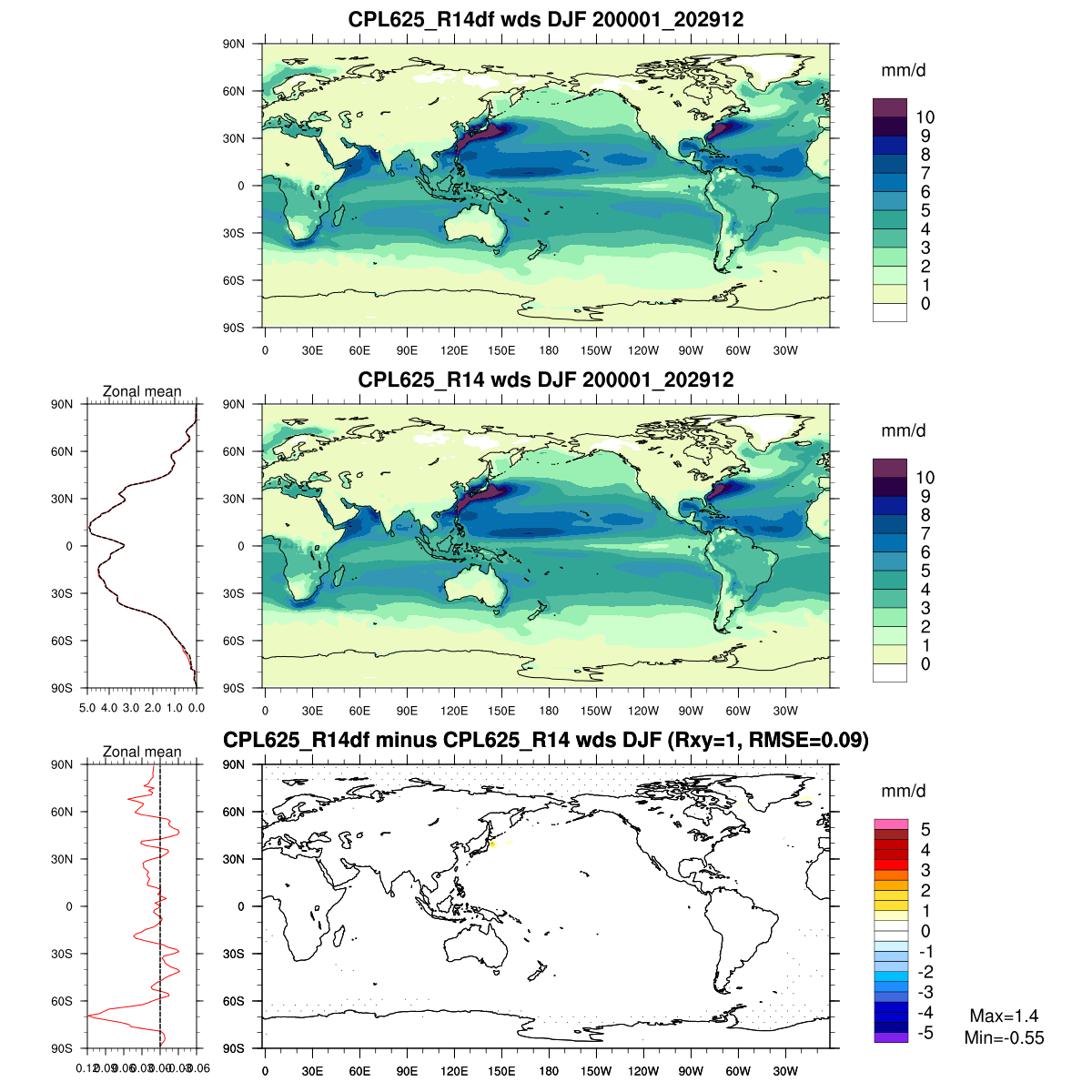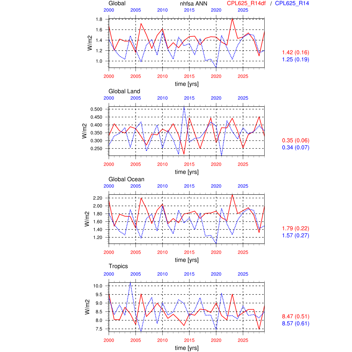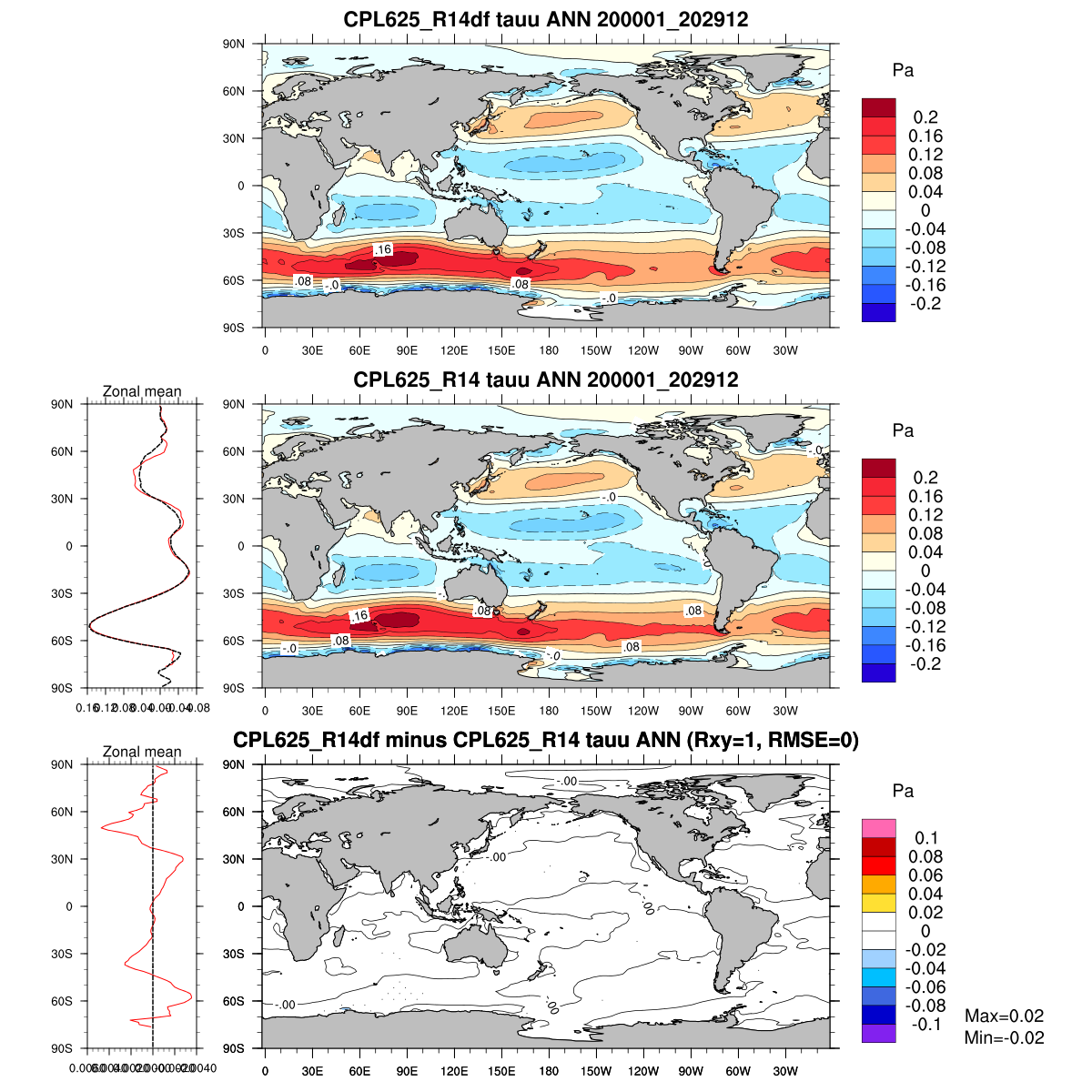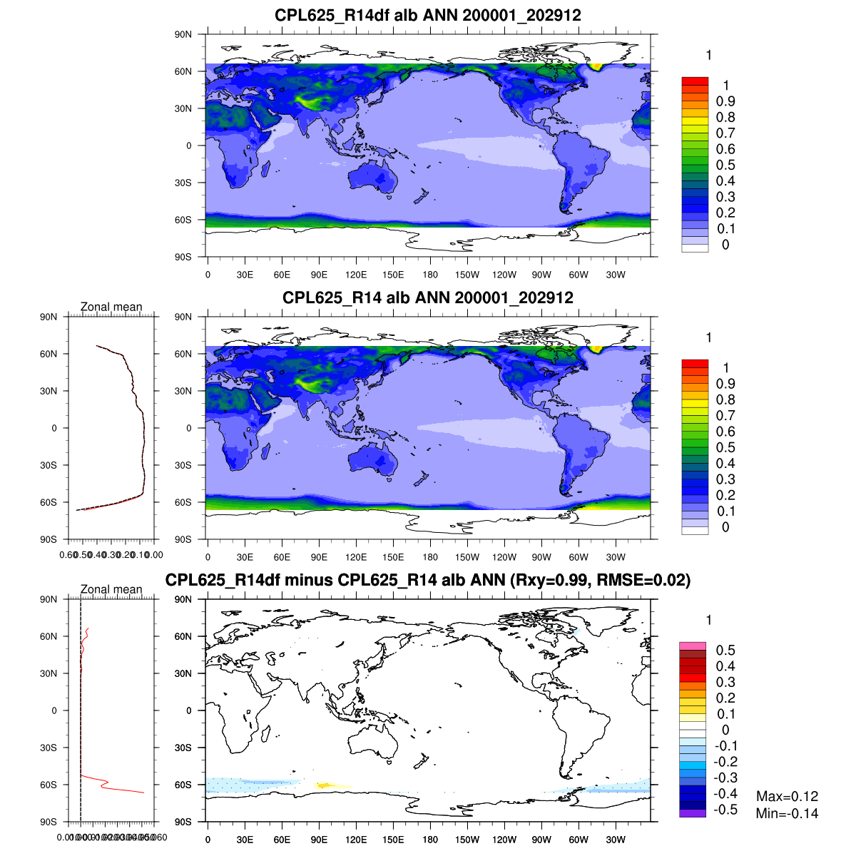 | Param file CPL625_R14df | Namelist CPL625_R14df | and, if against another simulation : | Param file CPL625_R14 | Namelist CPL625_R14 |