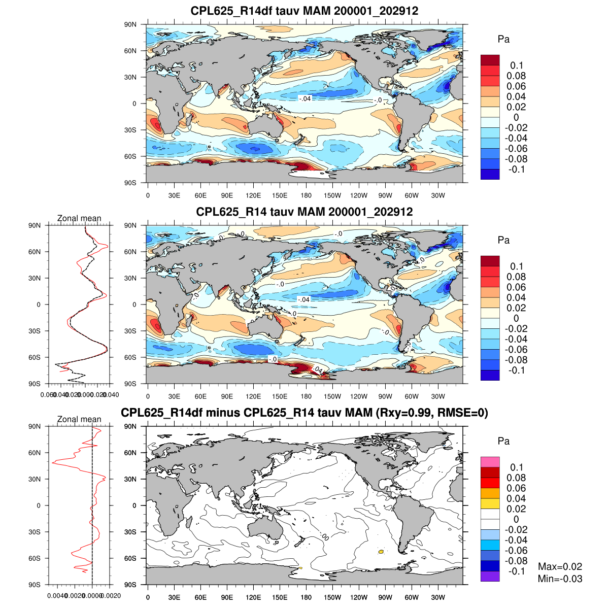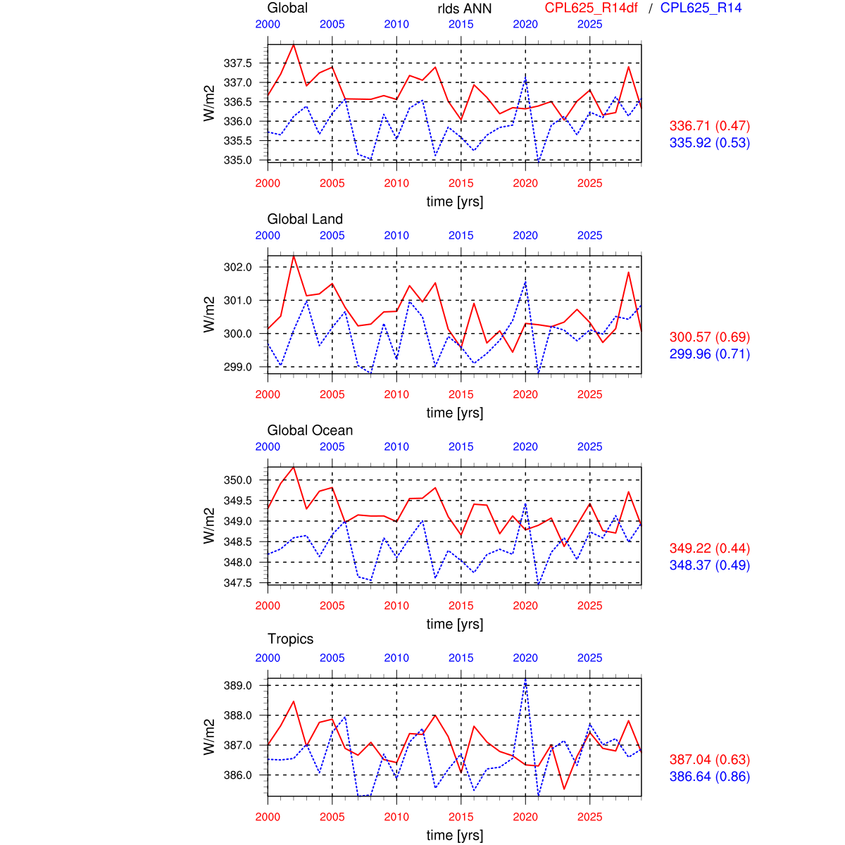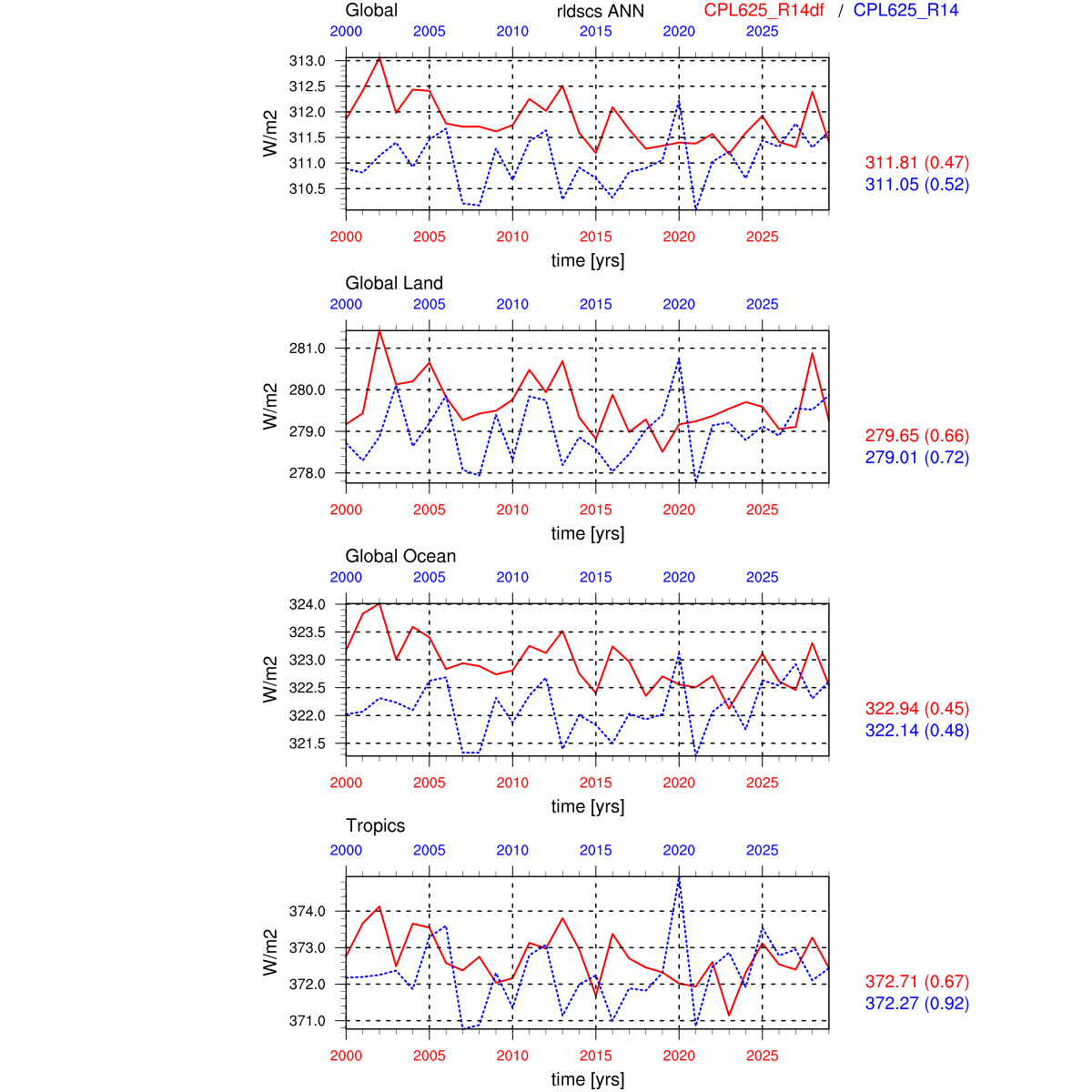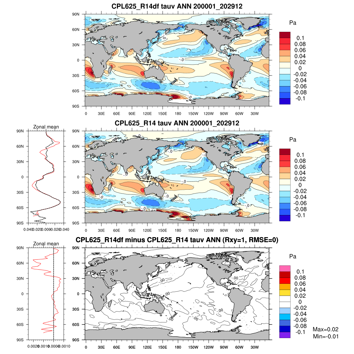 | Param file CPL625_R14df | Namelist CPL625_R14df | and, if against another simulation : | Param file CPL625_R14 | Namelist CPL625_R14 |