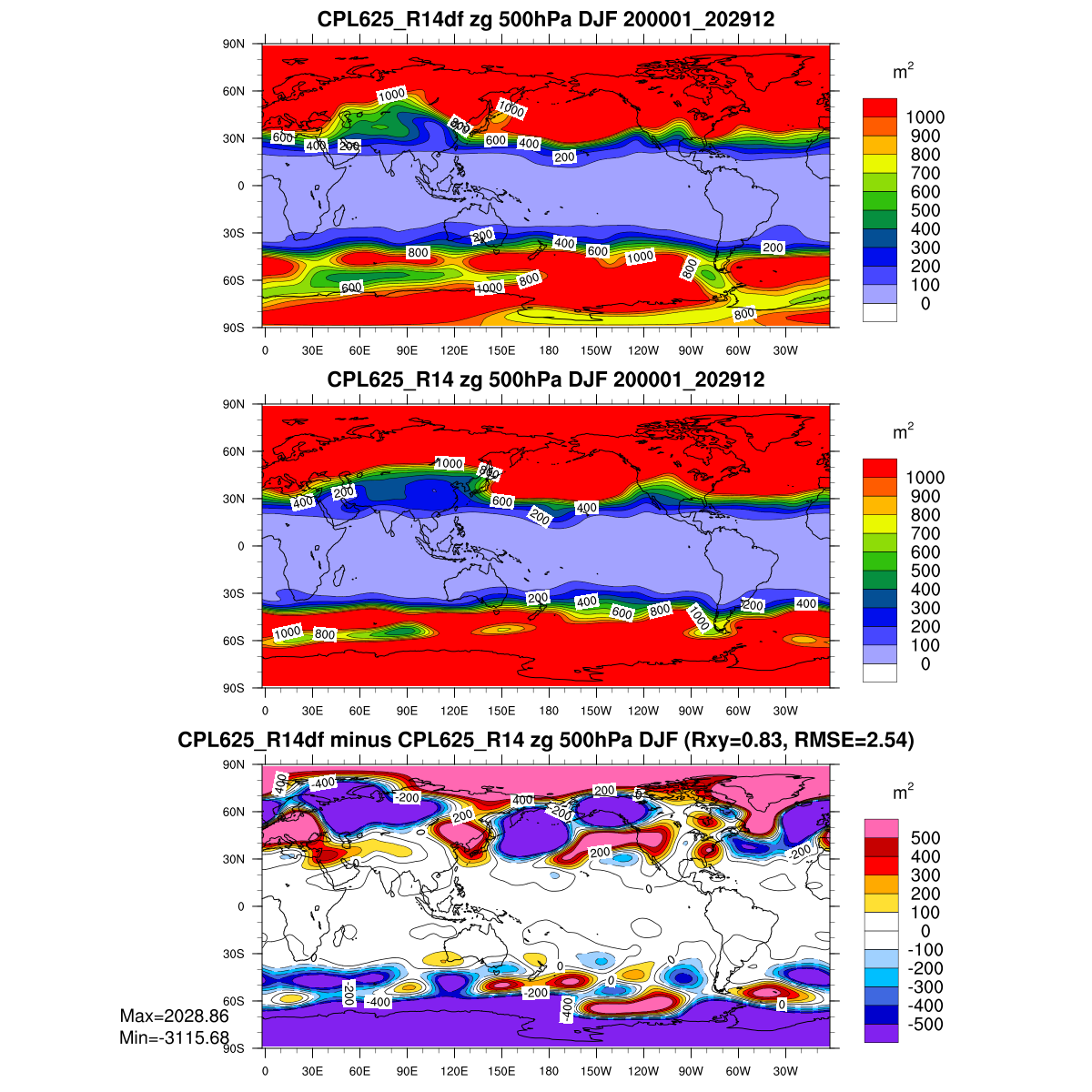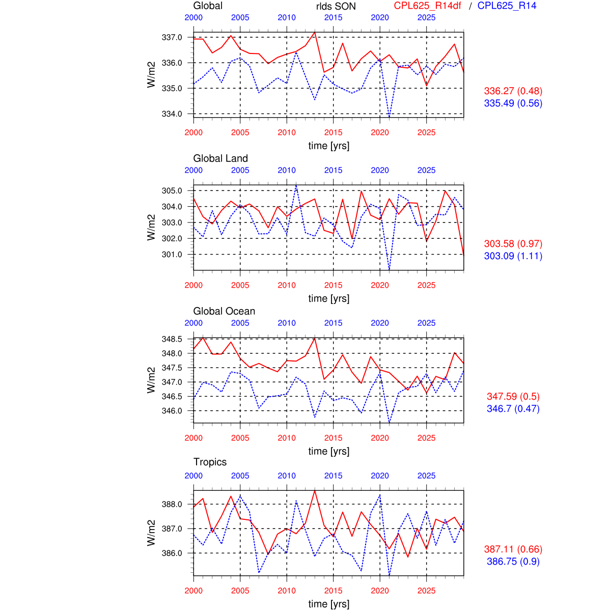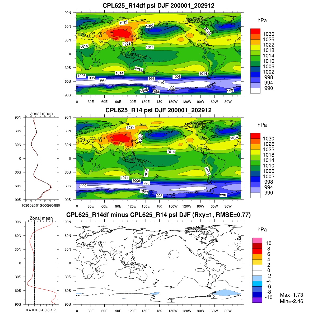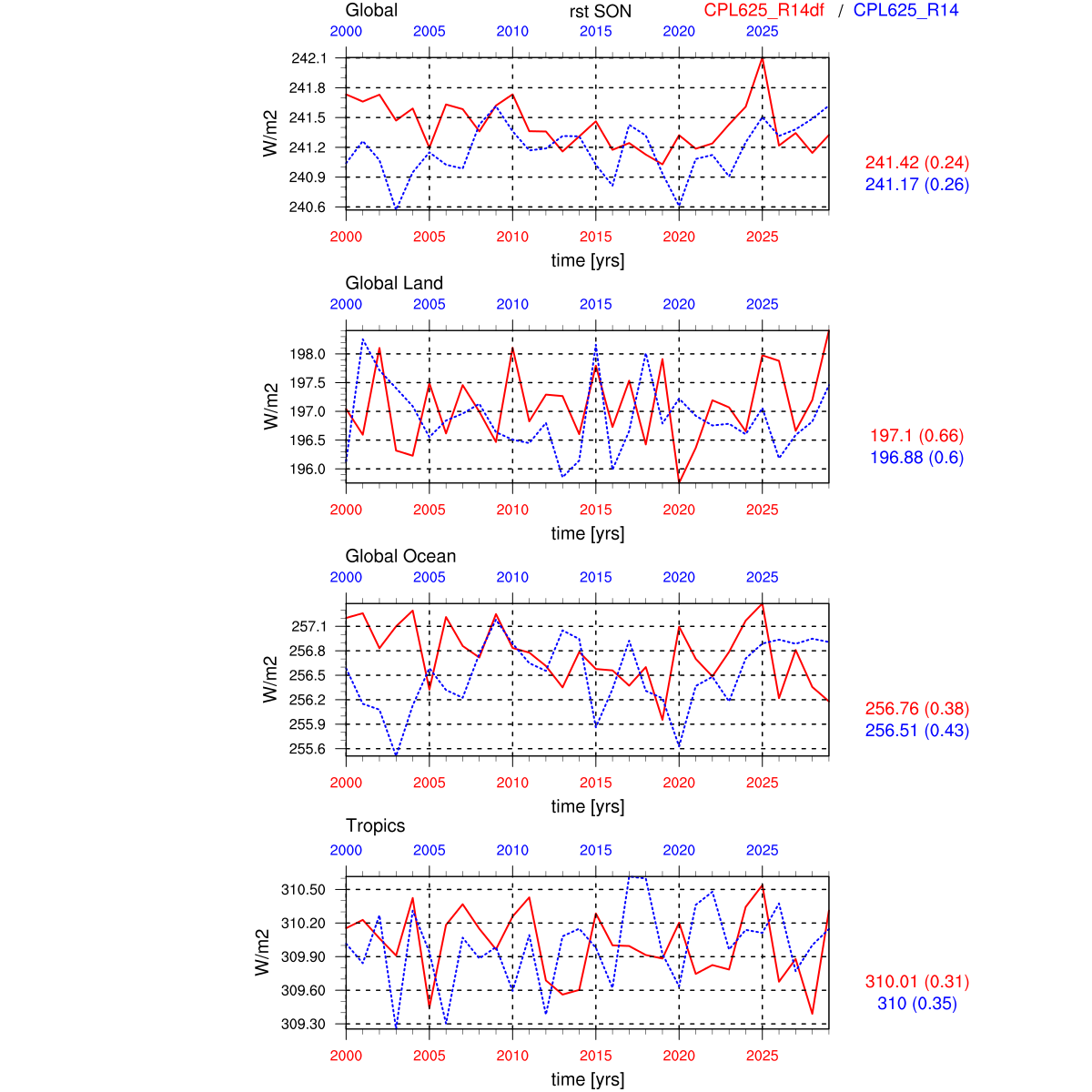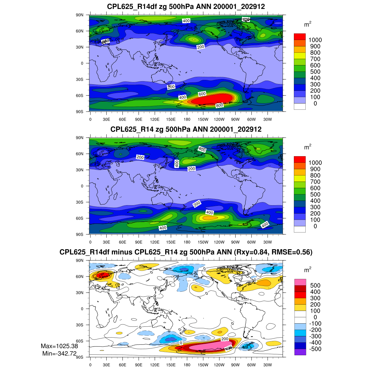 | Param file CPL625_R14df | Namelist CPL625_R14df | and, if against another simulation : | Param file CPL625_R14 | Namelist CPL625_R14 |