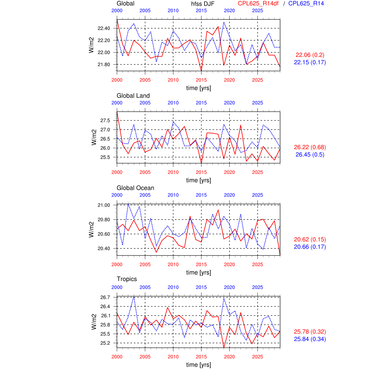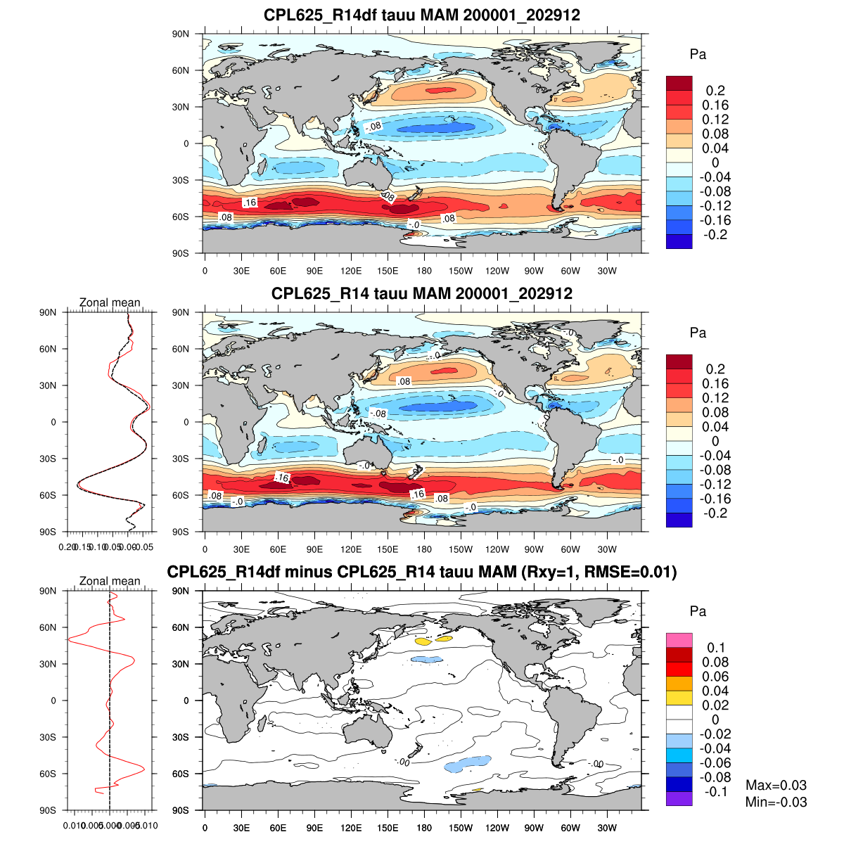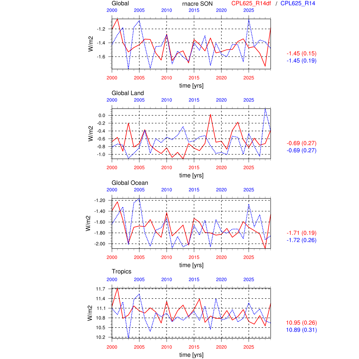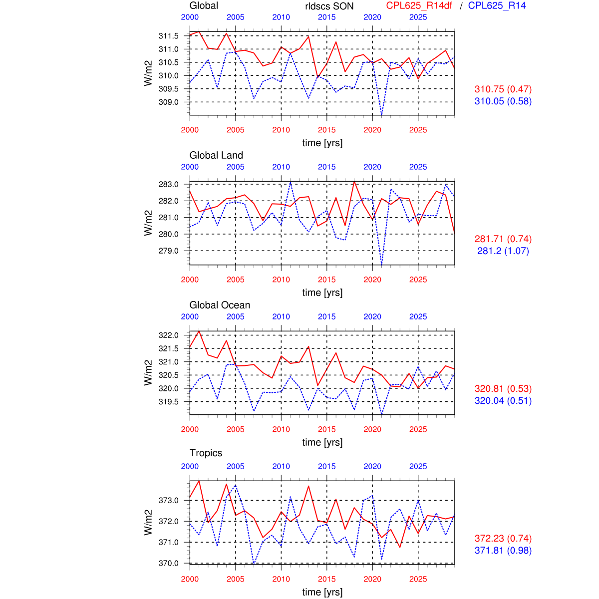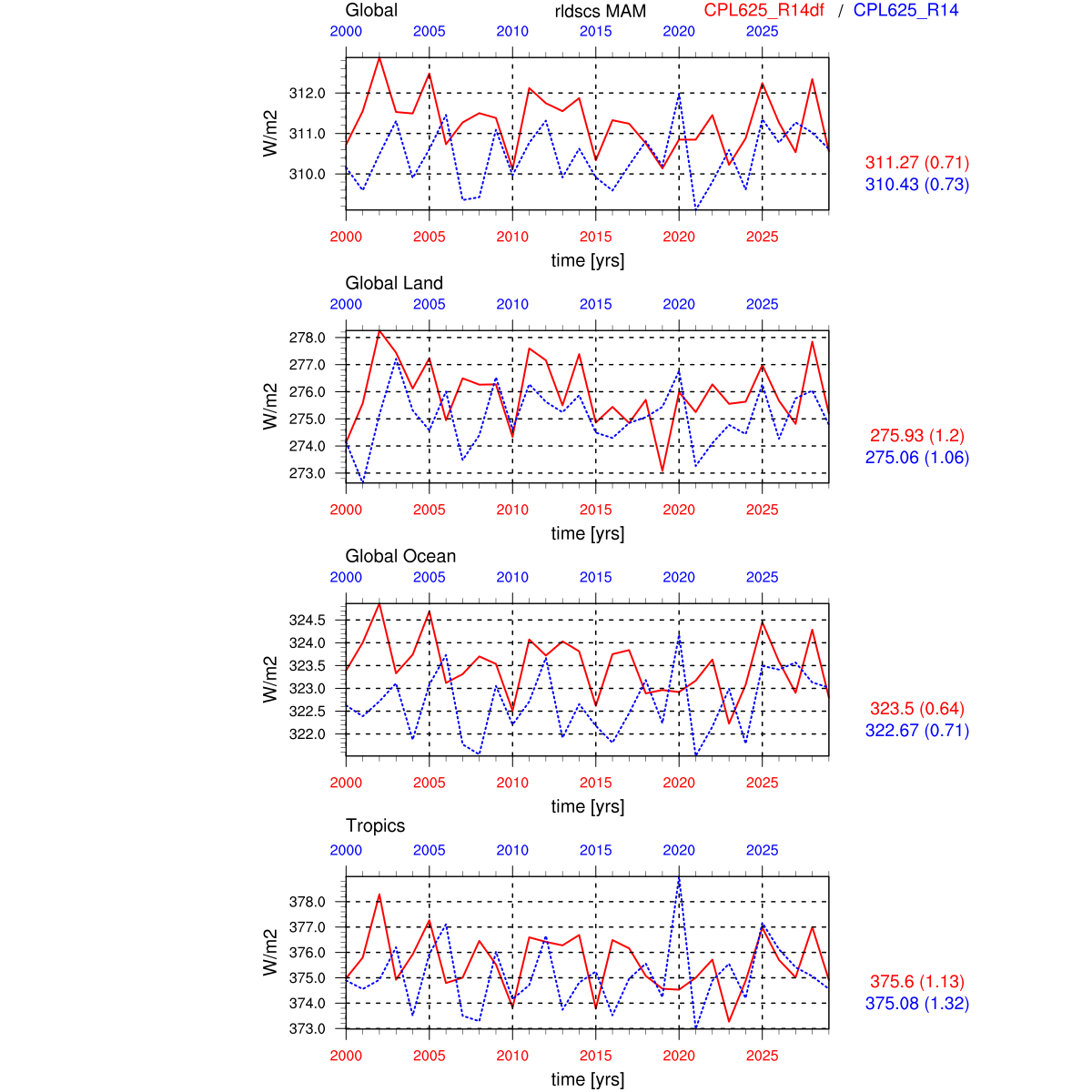 | Param file CPL625_R14df | Namelist CPL625_R14df | and, if against another simulation : | Param file CPL625_R14 | Namelist CPL625_R14 |