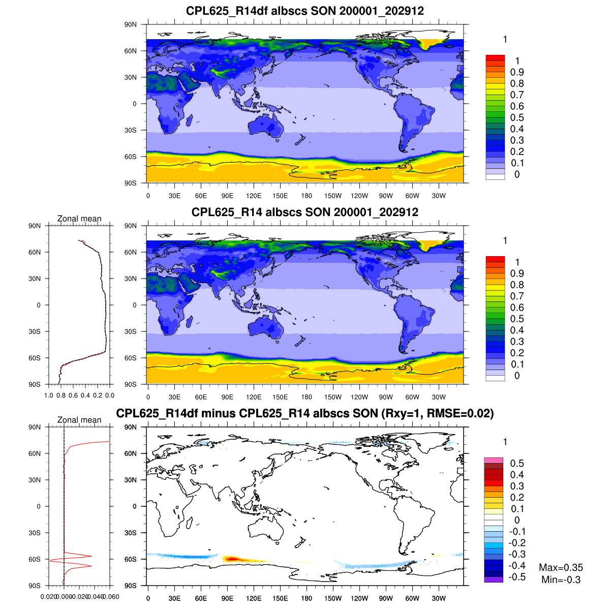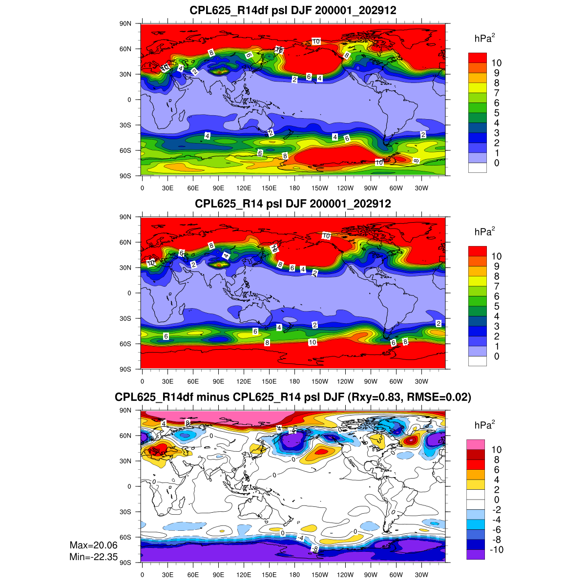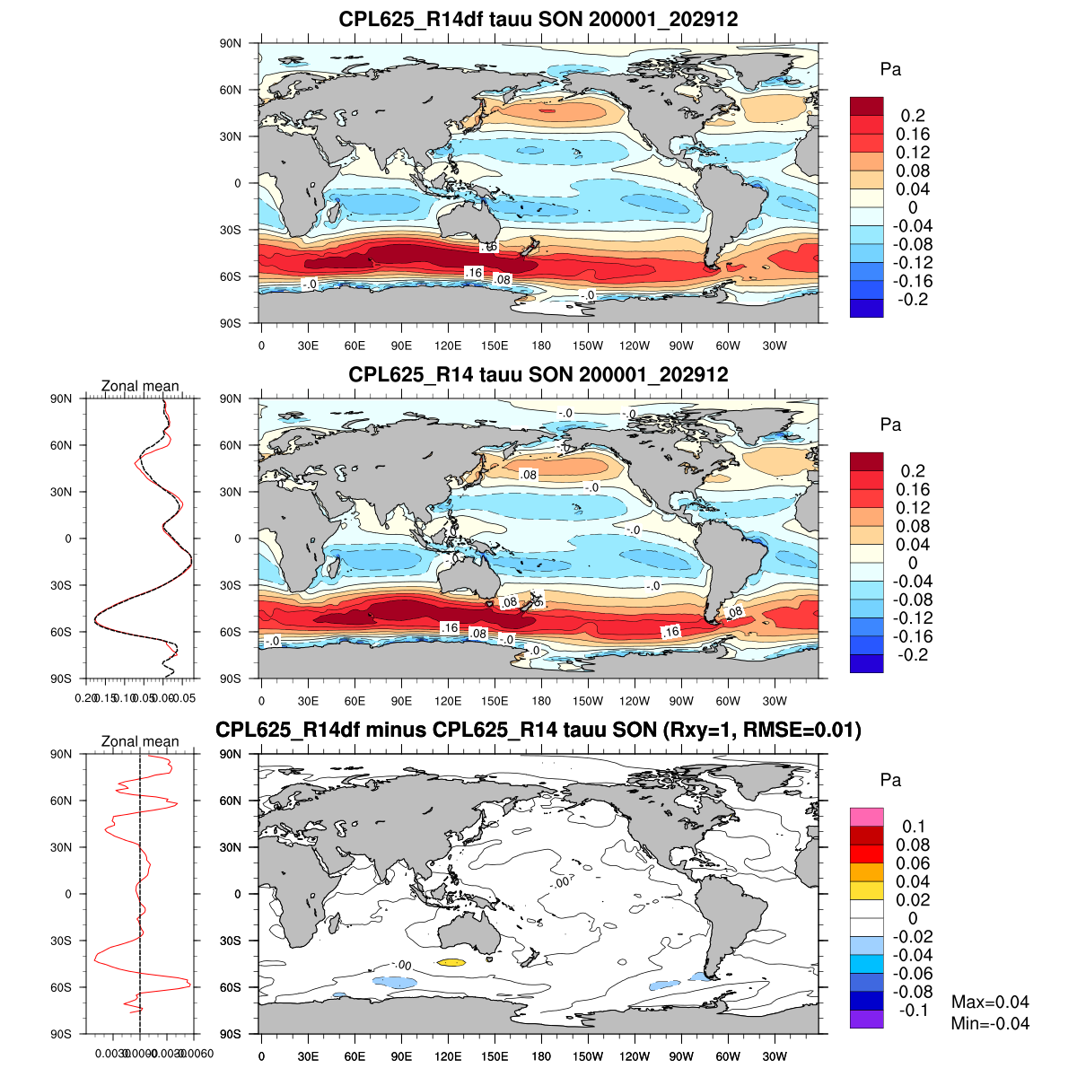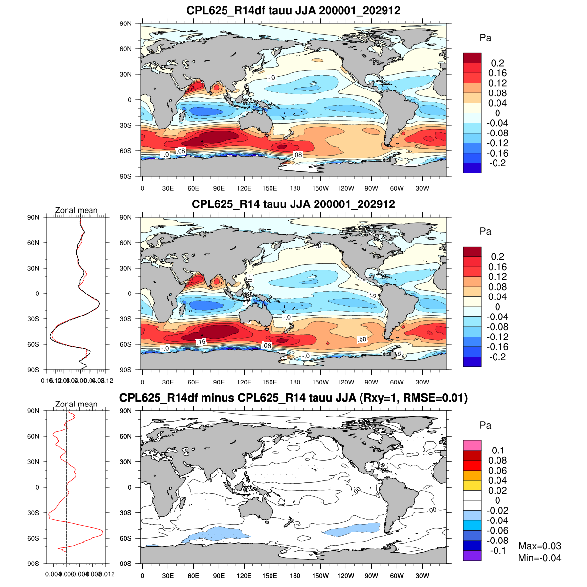 | Param file CPL625_R14df | Namelist CPL625_R14df | and, if against another simulation : | Param file CPL625_R14 | Namelist CPL625_R14 |
