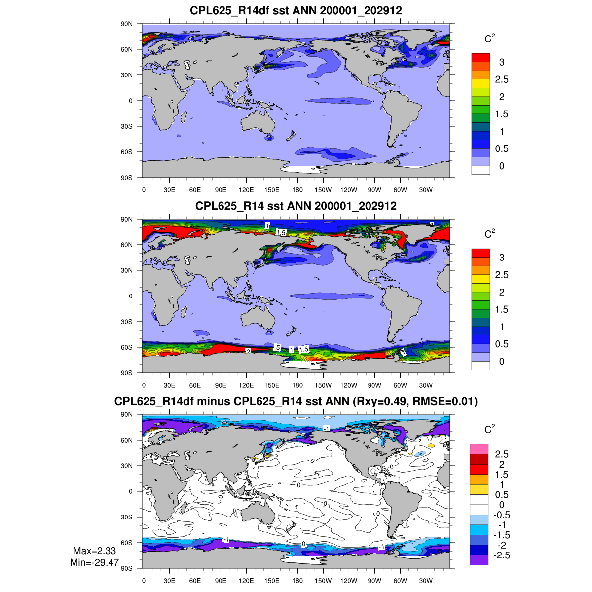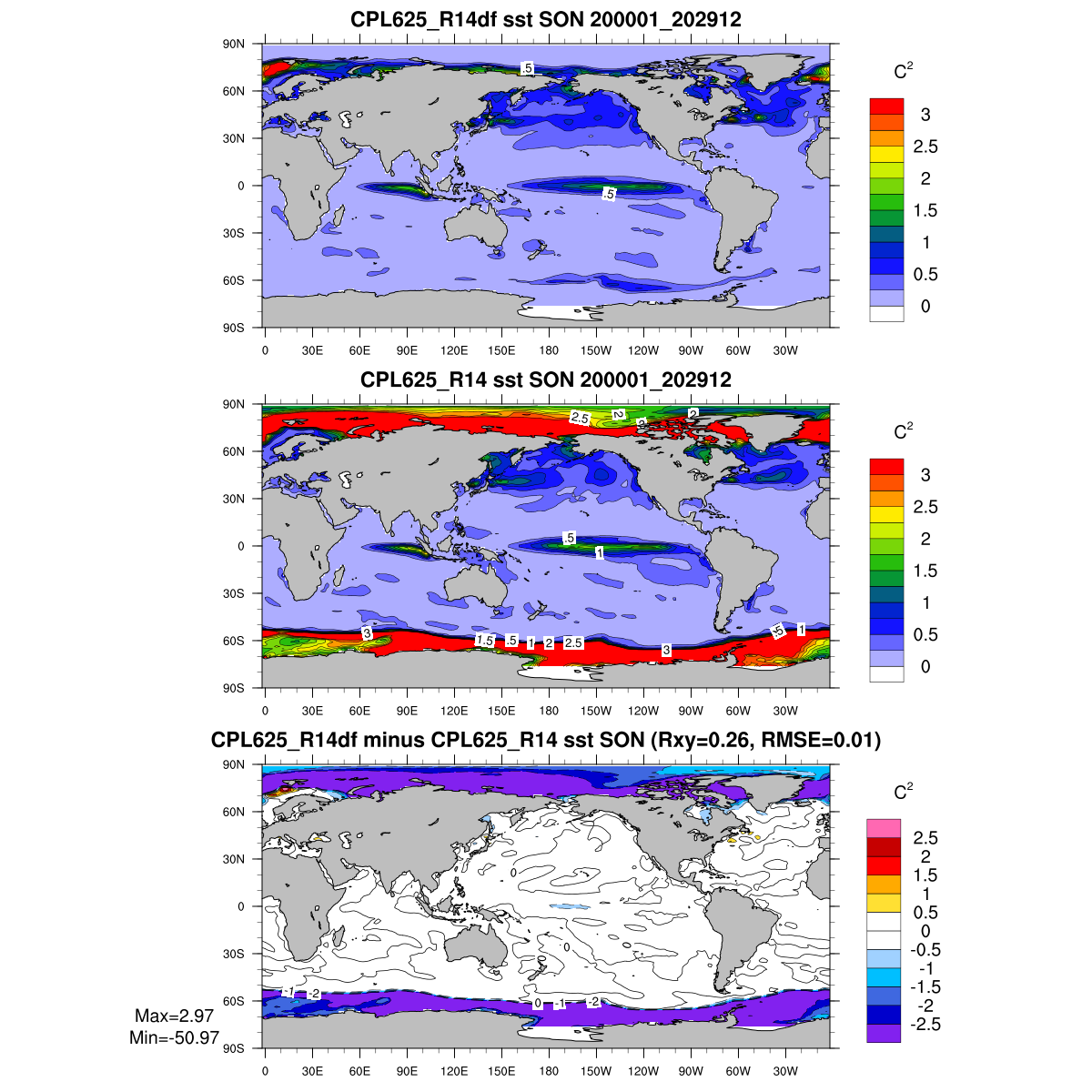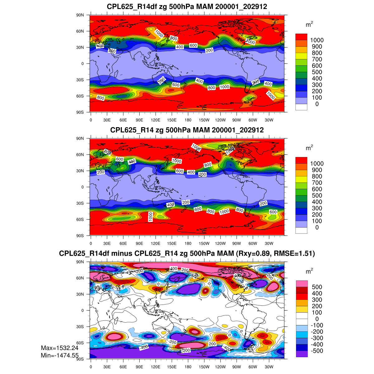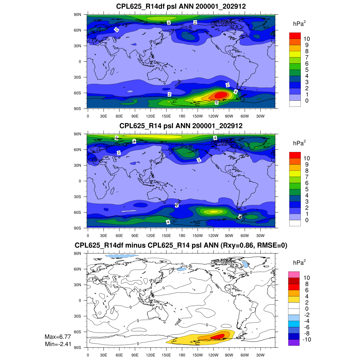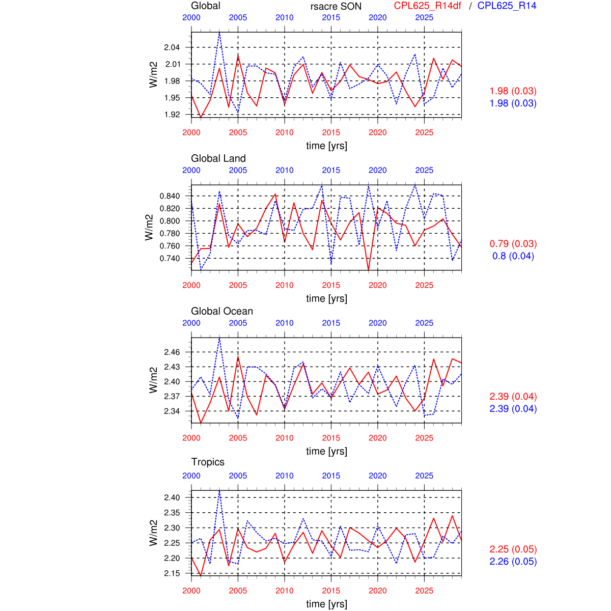 | Param file CPL625_R14df | Namelist CPL625_R14df | and, if against another simulation : | Param file CPL625_R14 | Namelist CPL625_R14 |