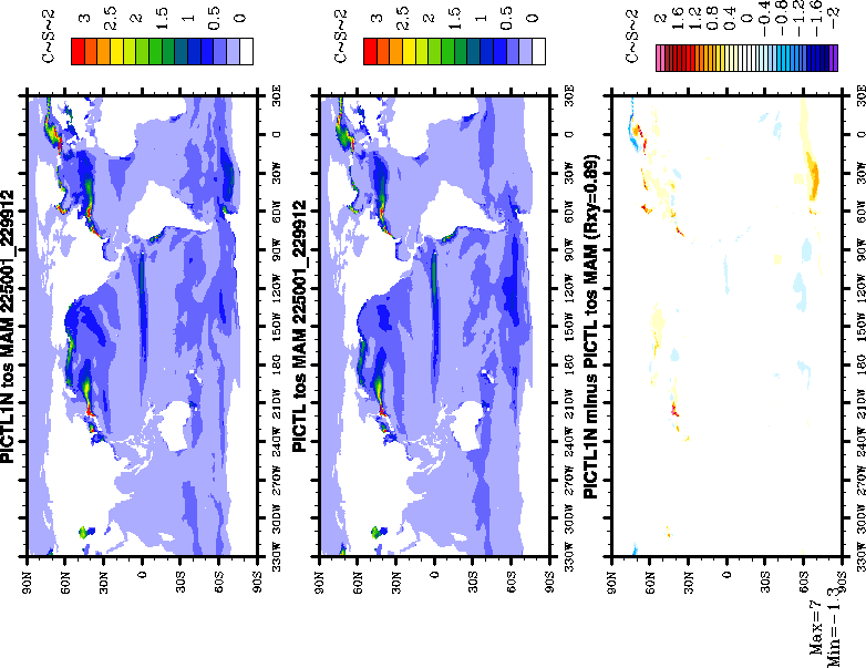 - Polar view of sea-ice thickness and SST in March and September of PICTL1N compared with HADISST