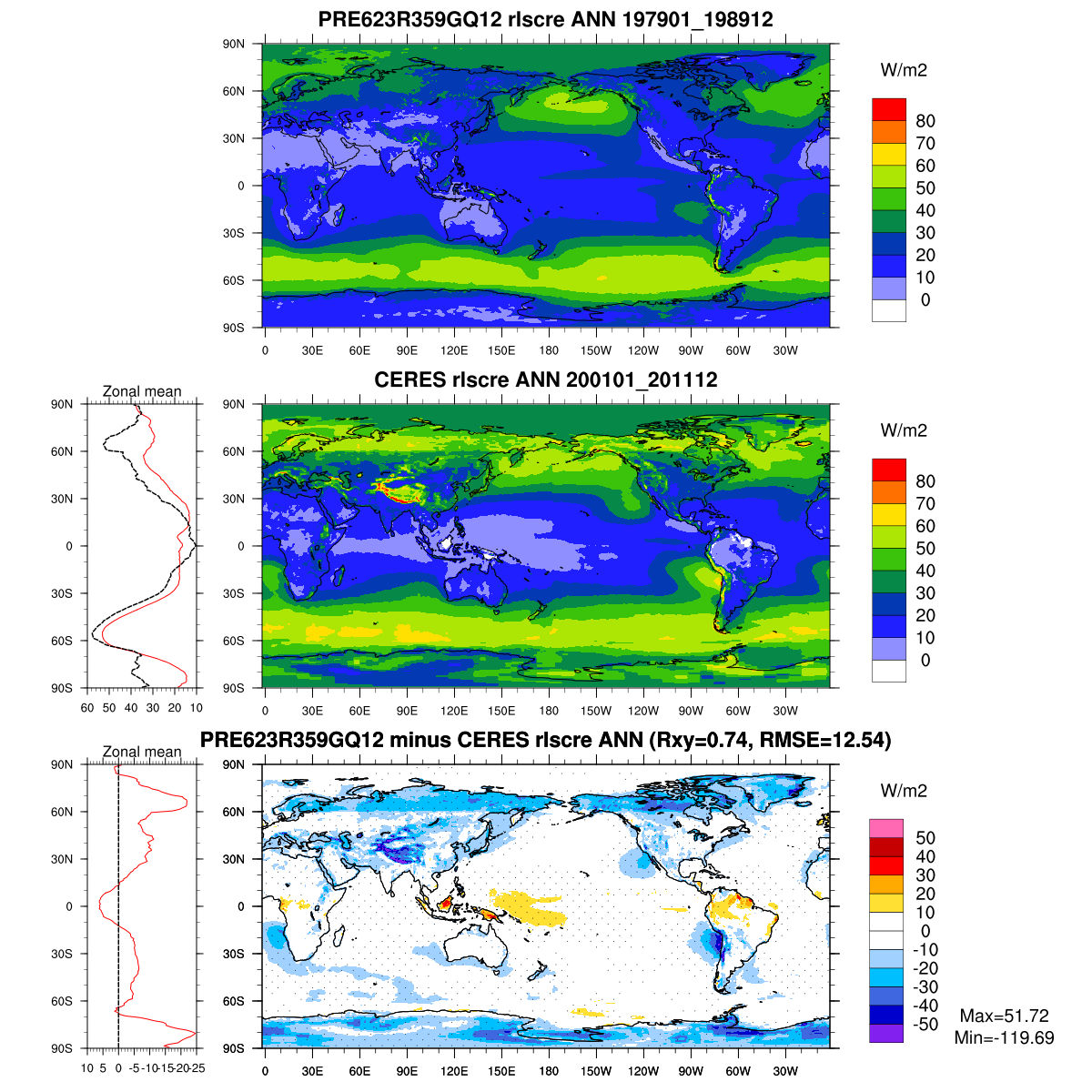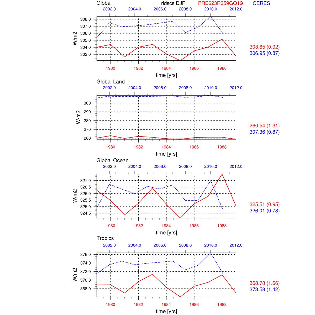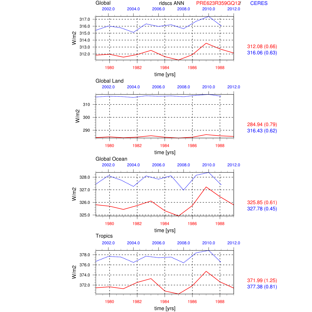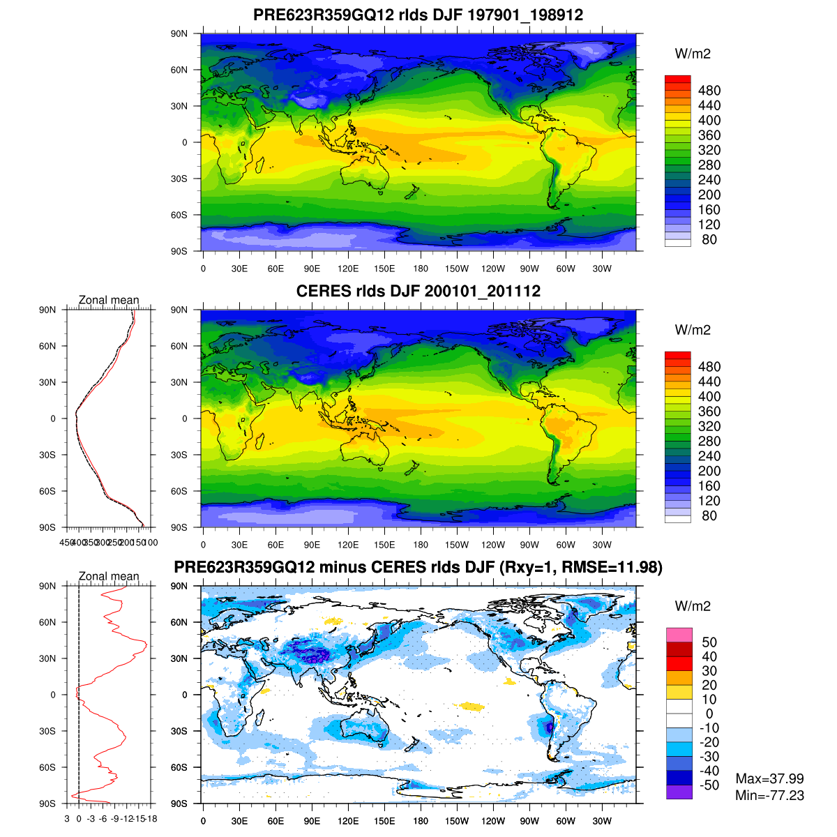 | Param file PRE623R359GQ12 | Namelist PRE623R359GQ12 | and, if against another simulation : | Param file OBS | Namelist OBS |