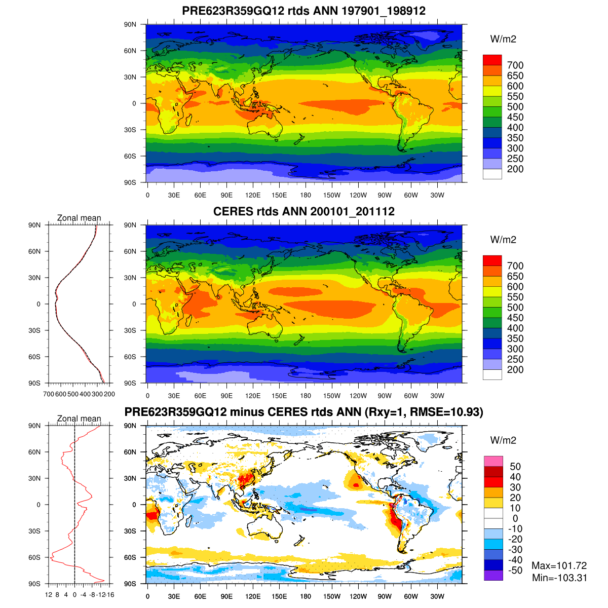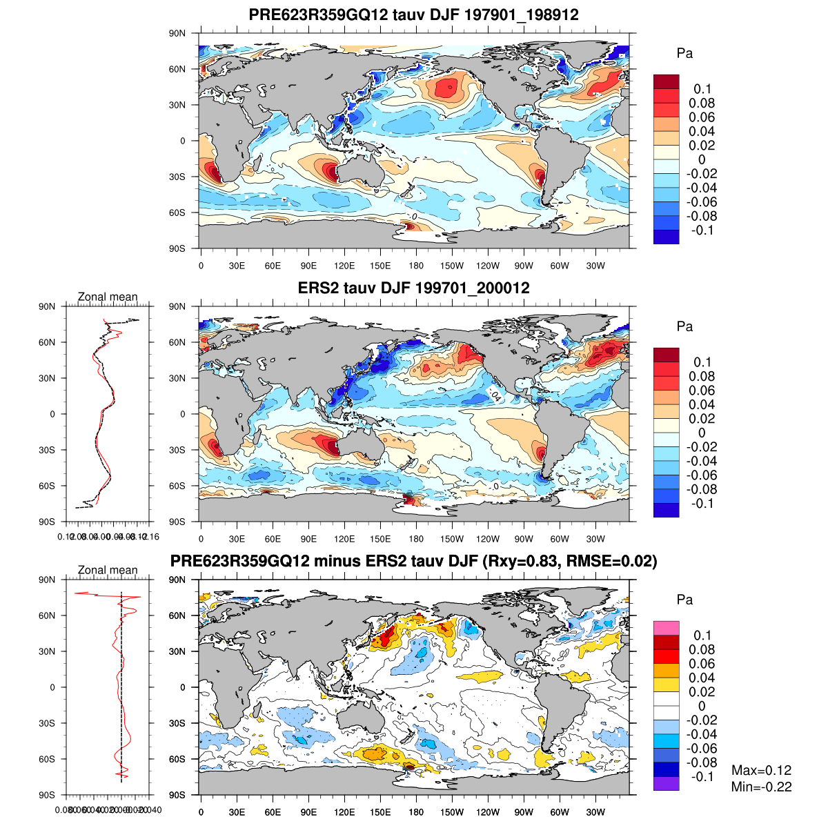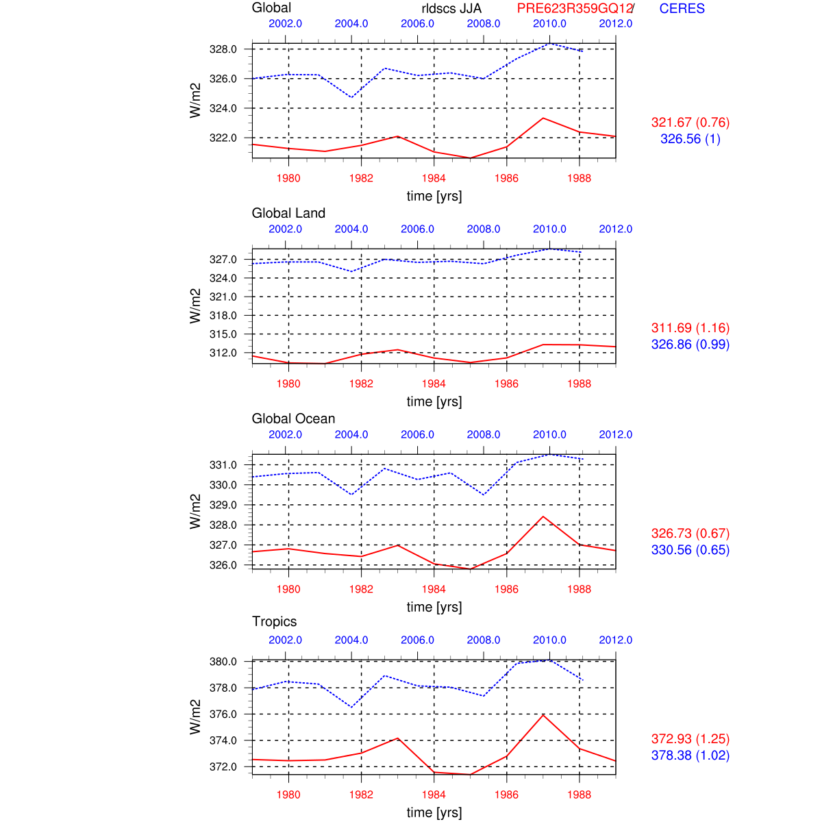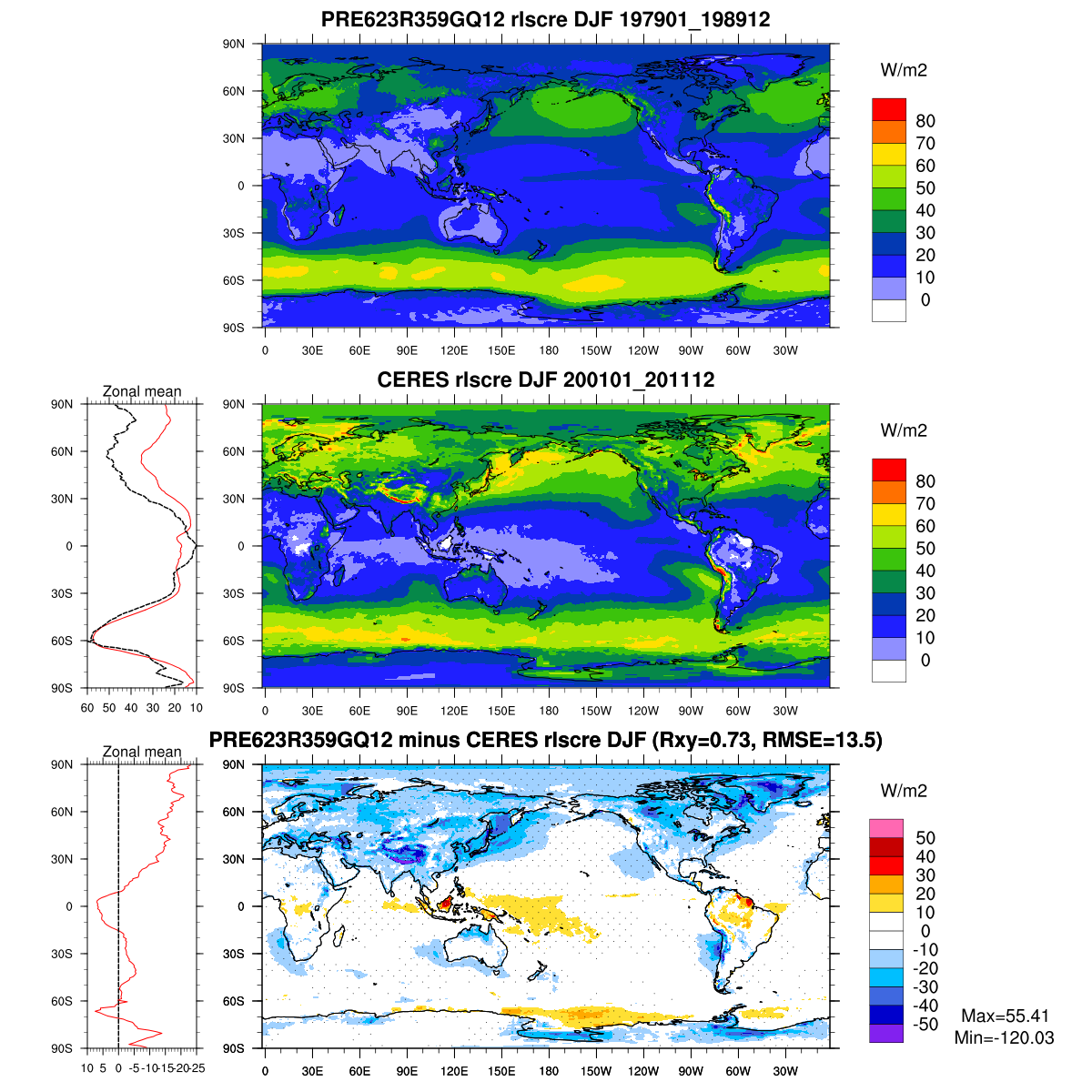 | Param file PRE623R359GQ12 | Namelist PRE623R359GQ12 | and, if against another simulation : | Param file OBS | Namelist OBS |