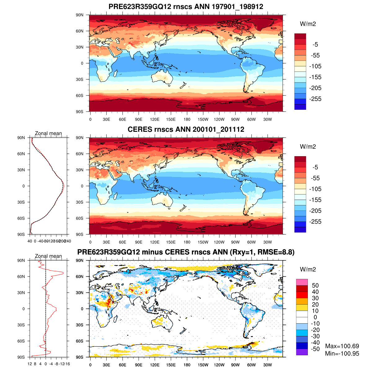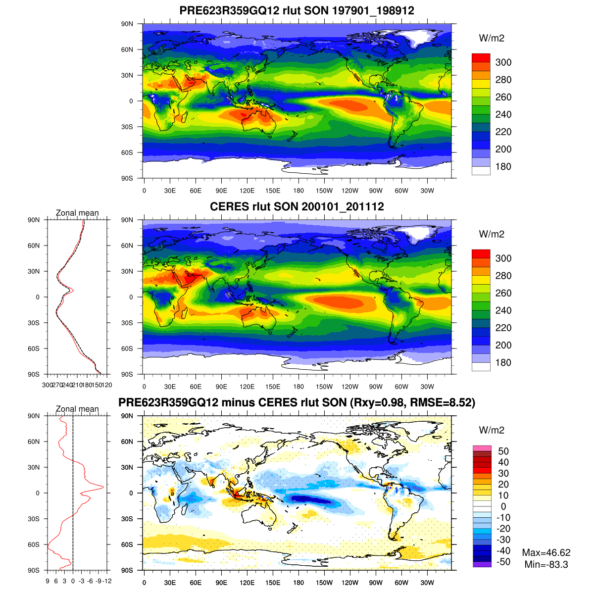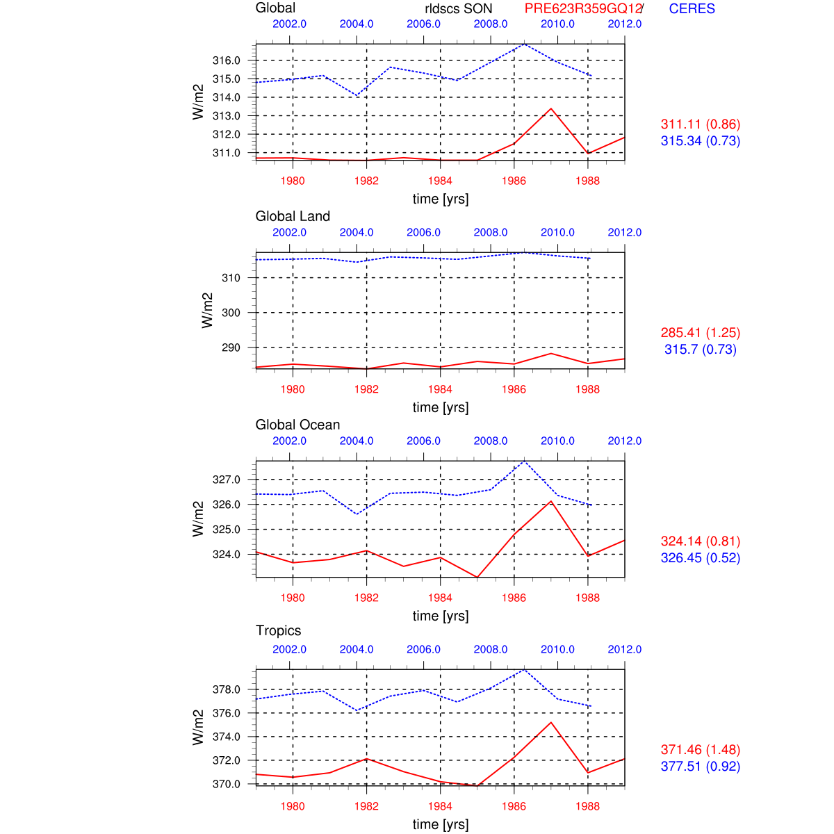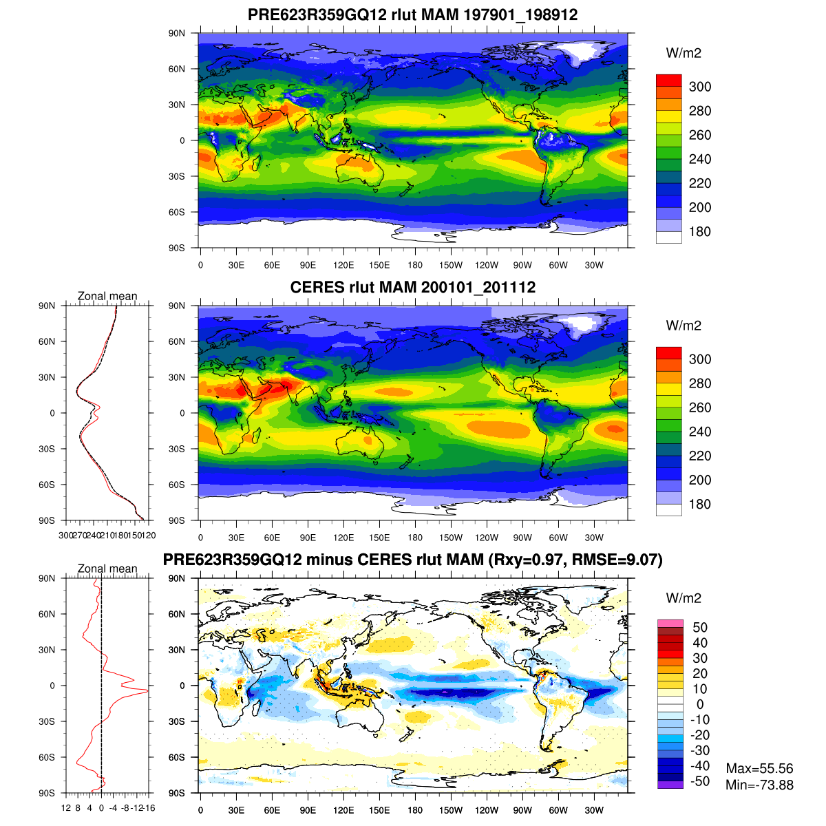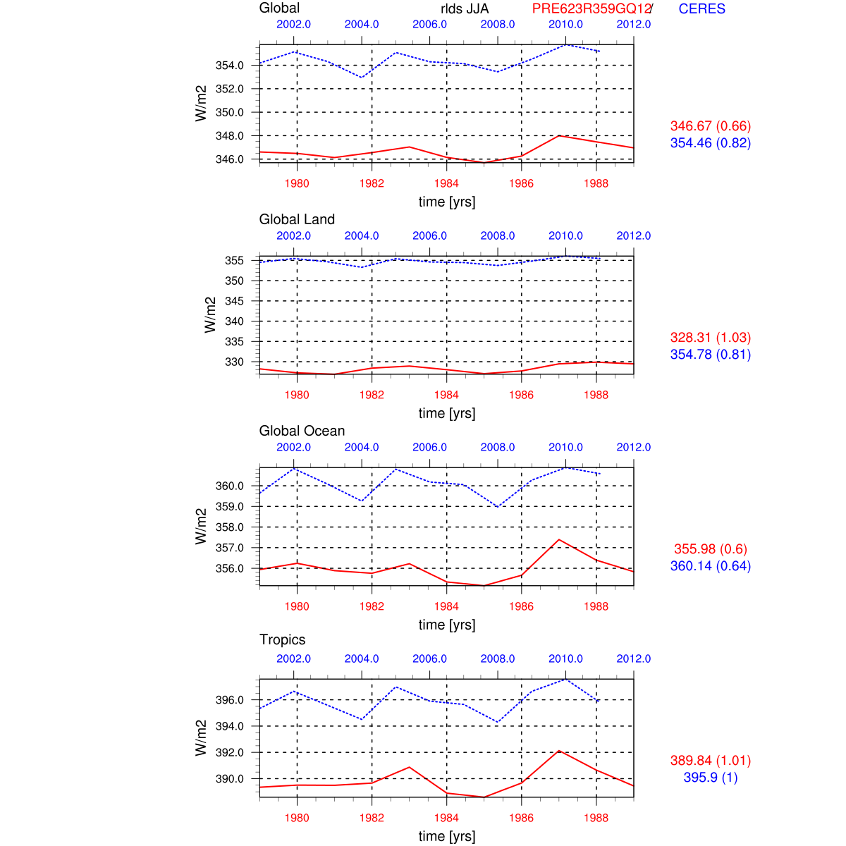 | Param file PRE623R359GQ12 | Namelist PRE623R359GQ12 | and, if against another simulation : | Param file OBS | Namelist OBS |