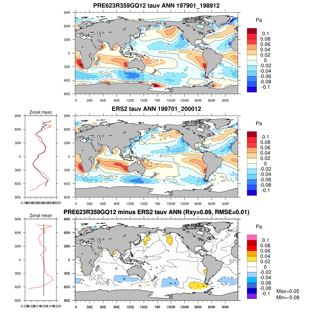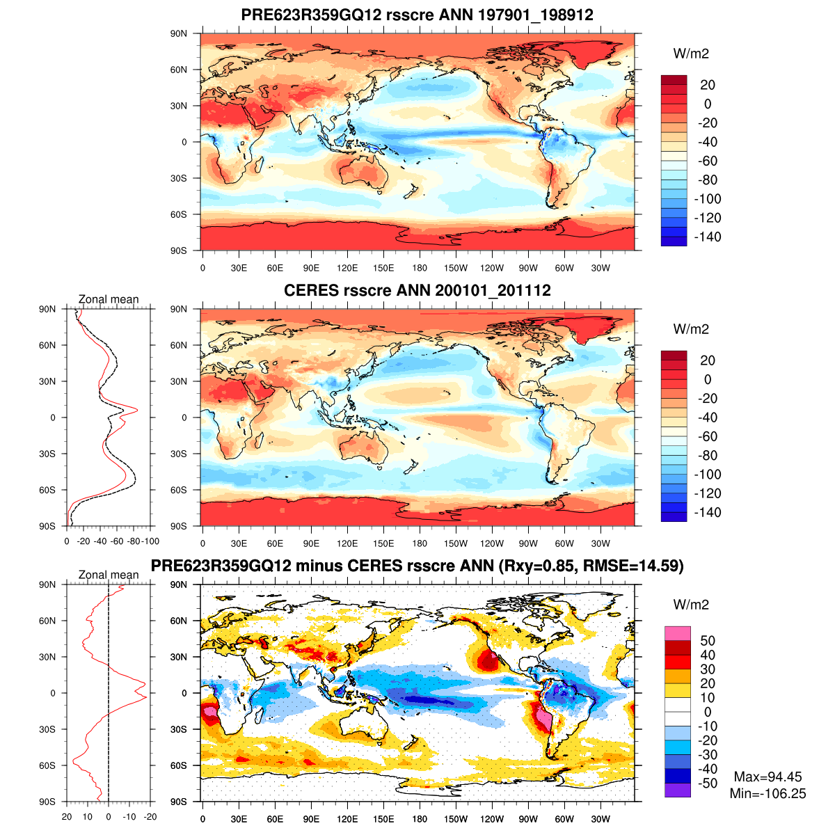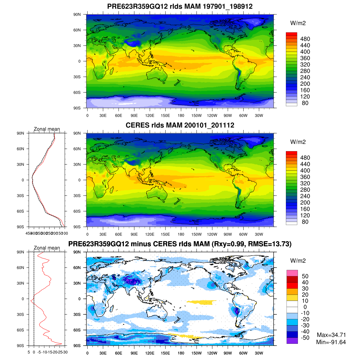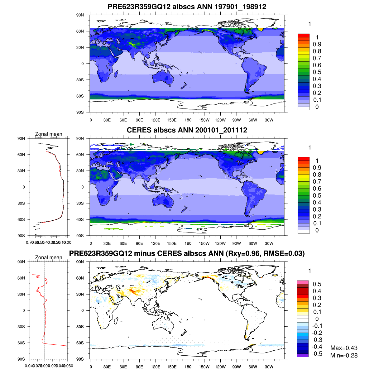 | Param file PRE623R359GQ12 | Namelist PRE623R359GQ12 | and, if against another simulation : | Param file OBS | Namelist OBS |