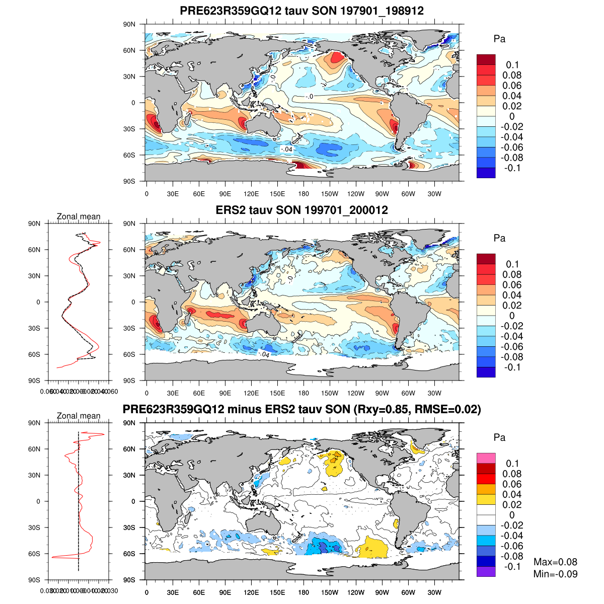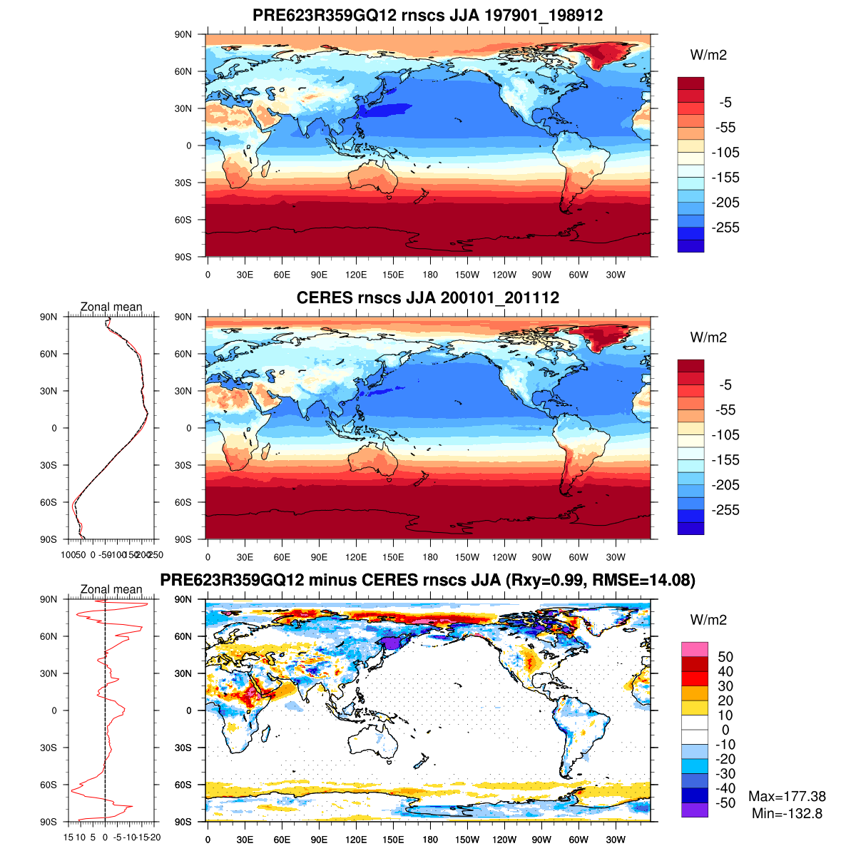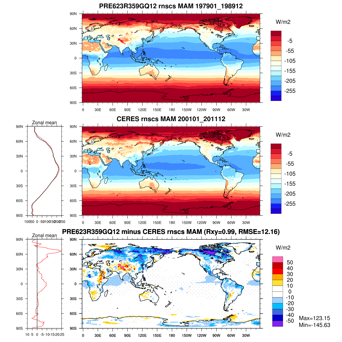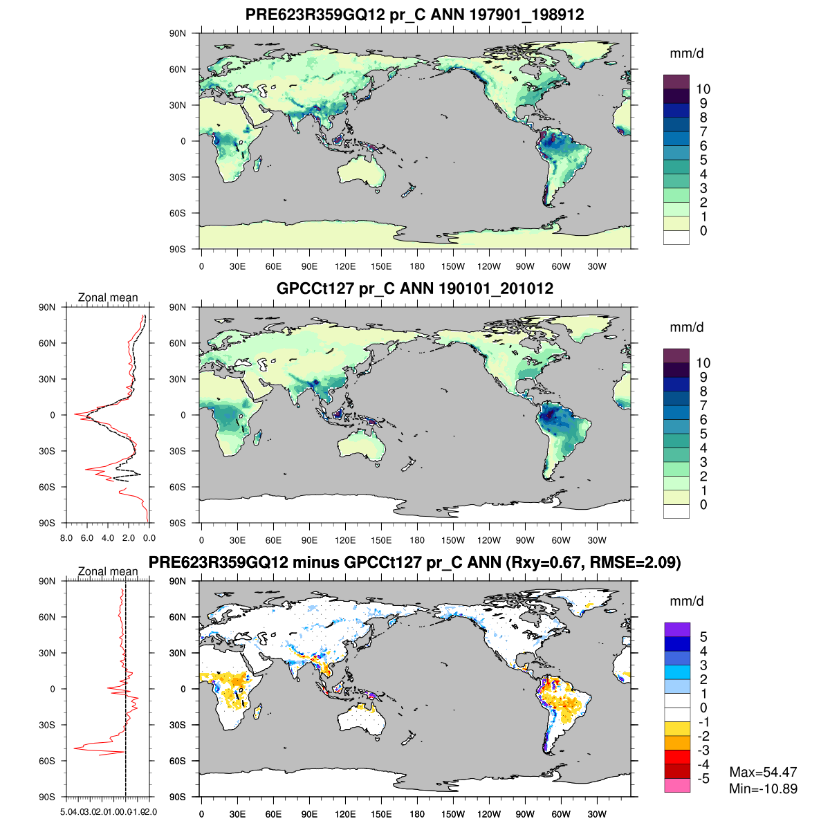 | Param file PRE623R359GQ12 | Namelist PRE623R359GQ12 | and, if against another simulation : | Param file OBS | Namelist OBS |