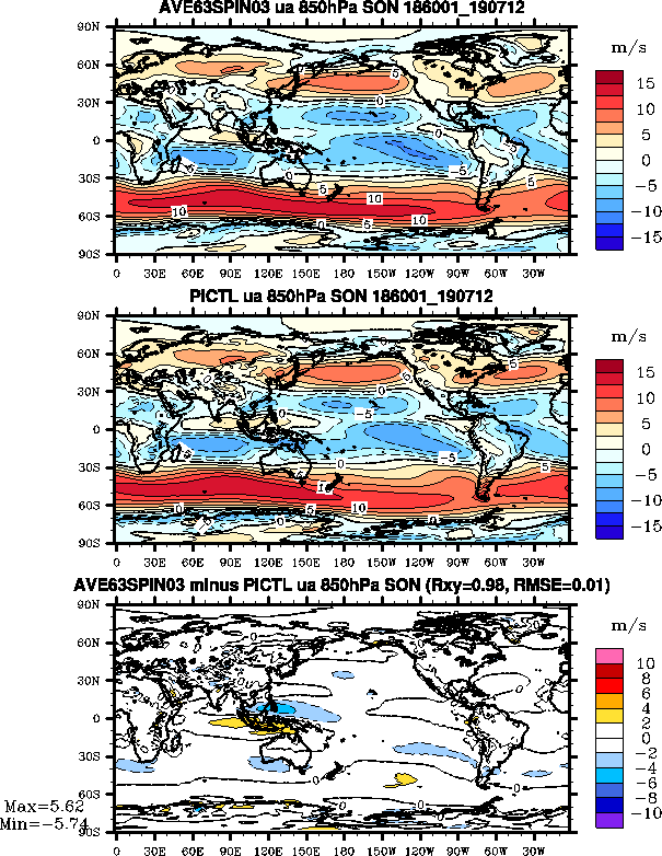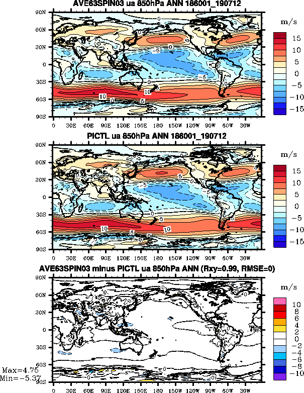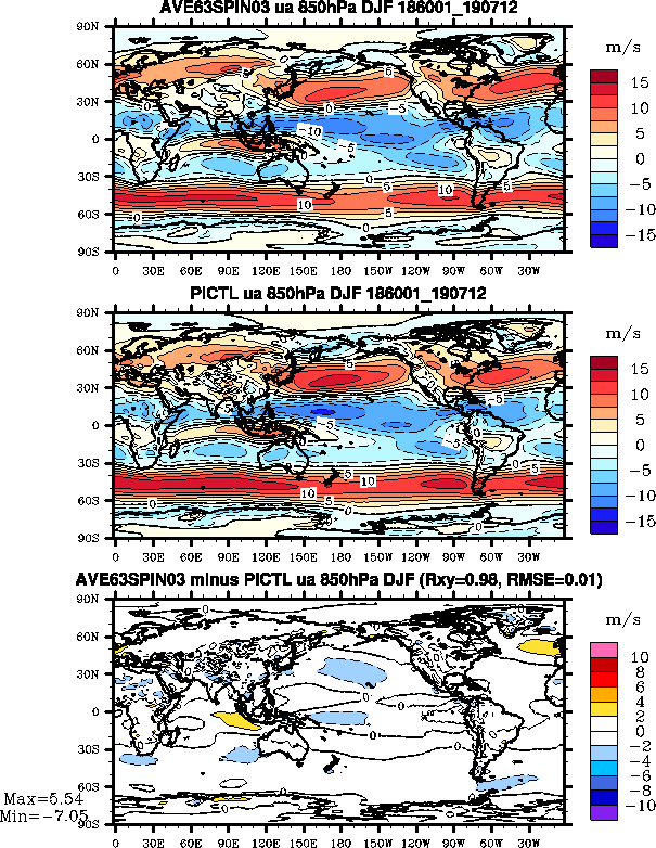 - Zonal wind at 850 mb