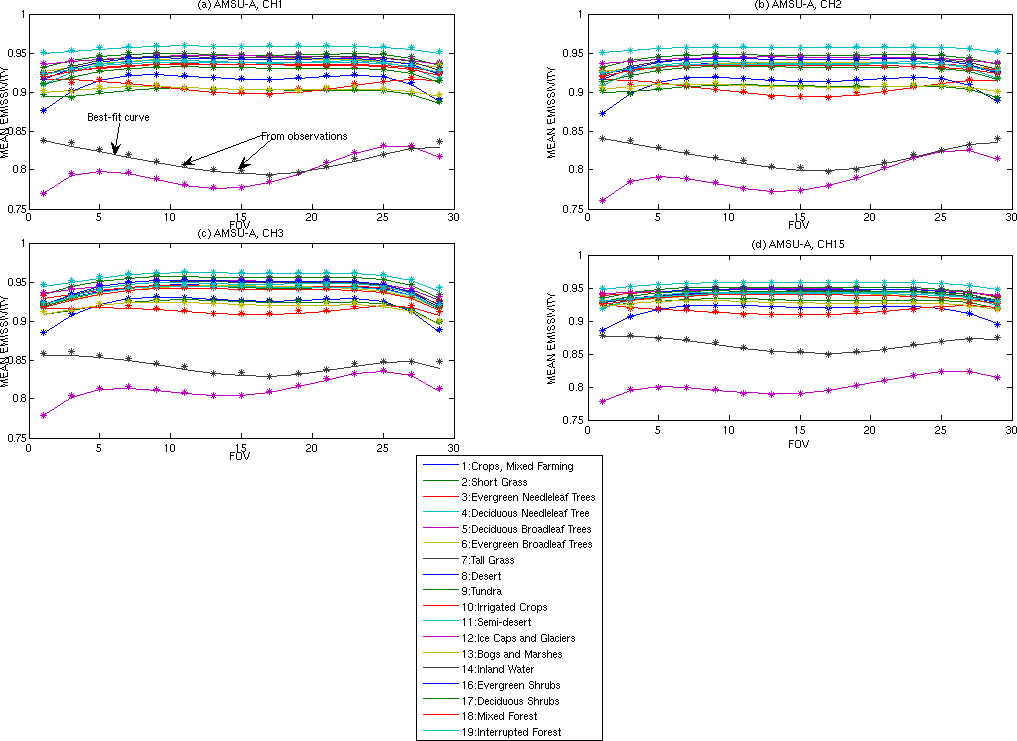 figure shows Mean emissivities for AMSU-A surface channels sorted out